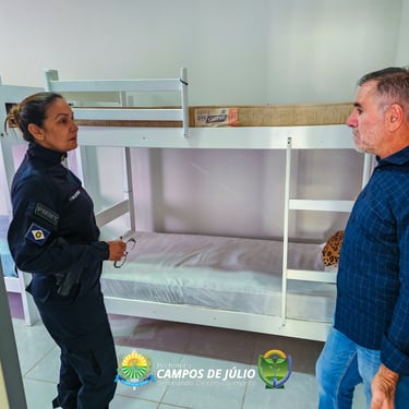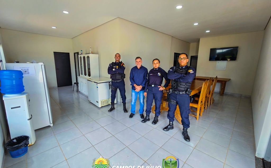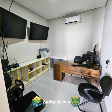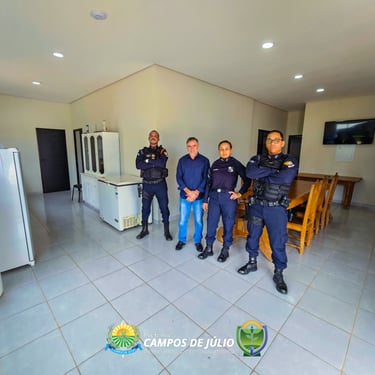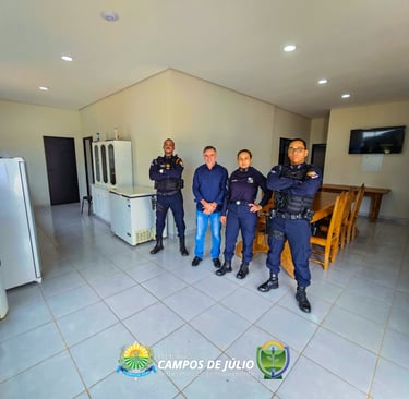 A Prefeitura de Campos de Júlio concluiu a obra de reforma e ampliação do 1º Pelotão da Polícia Militar, um investimento de R$ 297.758,47, realizado com recursos próprios do município. A nova estrutura, que conta com 235,52 m² de área construída, recebeu importantes melhorias, incluindo sala de monitoramento, área administrativa, dormitórios masculino e feminino, banheiros, depósito e sala de auxílio, além de revitalização da área externa.