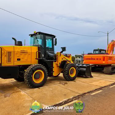O município de Campos de Júlio foi contemplado com importantes maquinários que vão fortalecer a frota municipal. Na última sexta-feira, 10 de outubro, chegaram uma Pá Carregadeira e uma Escavadeira Hidráulica, que se somam aos dois Caminhões Basculantes e ao Caminhão Pipa já recebidos. Ainda está prevista a chegada de um Trator Agrícola 110 CV.